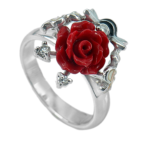 12.42 G. 3 Pcs. Wholesale Real 925 Sterling Silver Ring Size 5 Red Rose Powder