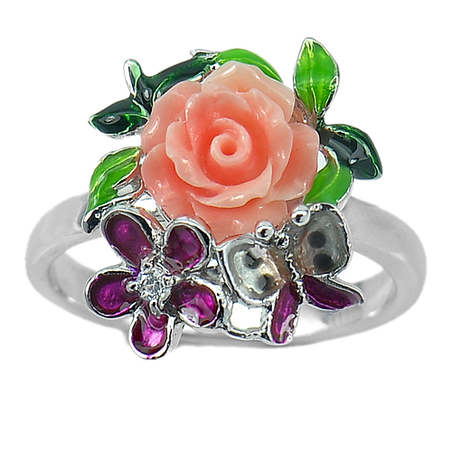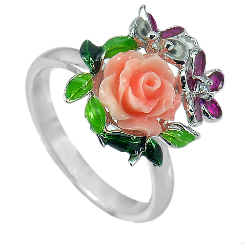 12.11 G. 3 Pcs. Wholesale Rose Powder Real 925 Sterling Silver Ring Size 7
