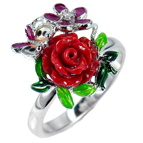 Round White CZ Size 1.5 x 1.5 Mm. 1 Pc. Red Rose Powder. Butterfly, Flower And Leaf Enamel.