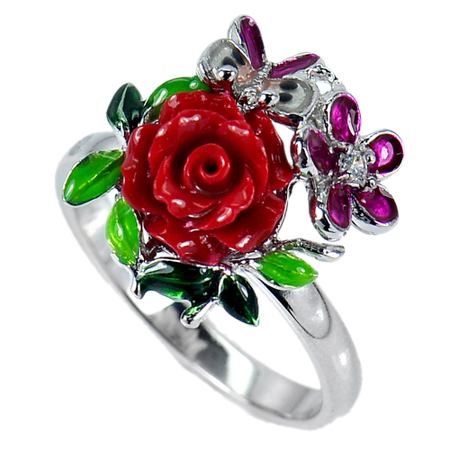 12.56 G. 3 Pcs. Wholesale Rose Powder Real 925 Sterling Silver Ring Size 7