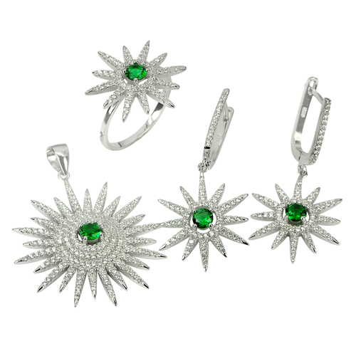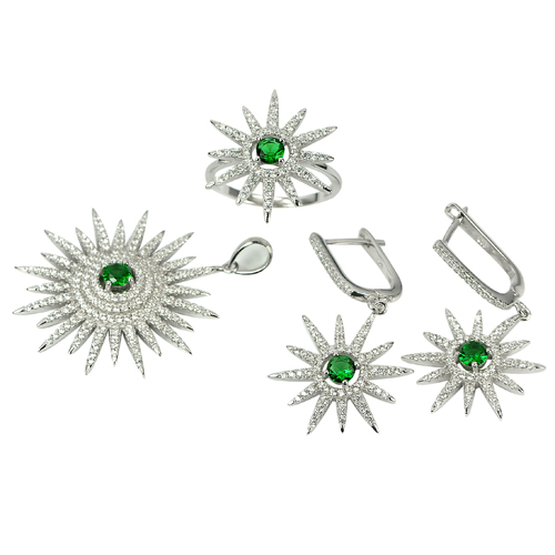 Green CZ Round Size 4.5 x 4.5 Mm. And White CZ Round Size 1 x 1 Mm. Stam 925