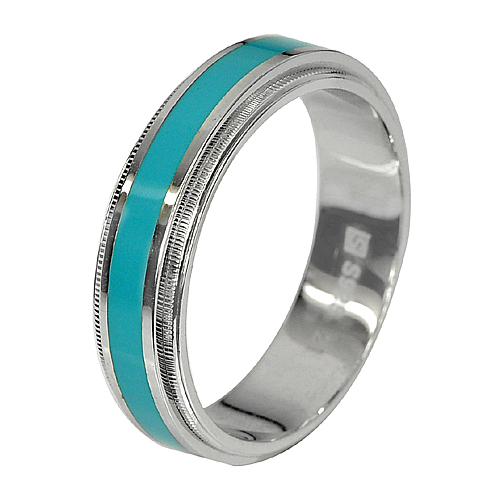 4.06 G. Nice Blue Enamel Real 925 Sterling Silver Fine Jewelry Ring Size 9.5