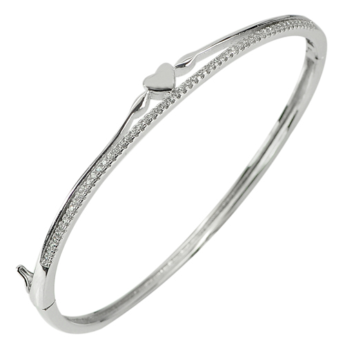 27.65 G. 3 Pcs. Heart Diameter 63 x 58 mm. 925 Sterling Silver Jewelry Bangle