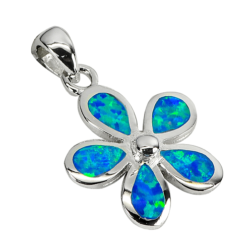 8.20 G. 3 Pcs. Real 925 Sterling Silver Multi Color Blue Created Opal Pendant