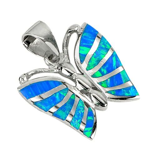 8.01 G. 3 Pcs. Real 925 Sterling Silver Multi Color Blue Created Opal Pendant