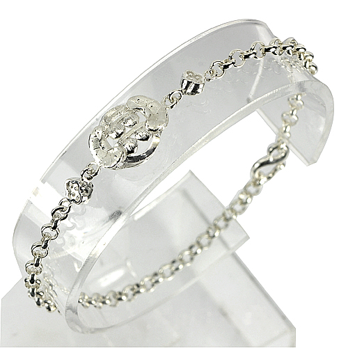 15.98 G. 3 Pcs. White Gold Plated Real 925 Sterling Silver Bracelet 7 Inch.