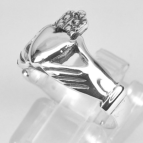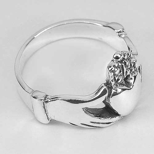 3.66 G. Real 925 Sterling Silver Heart Claddagh Design Plain Ring Size 7