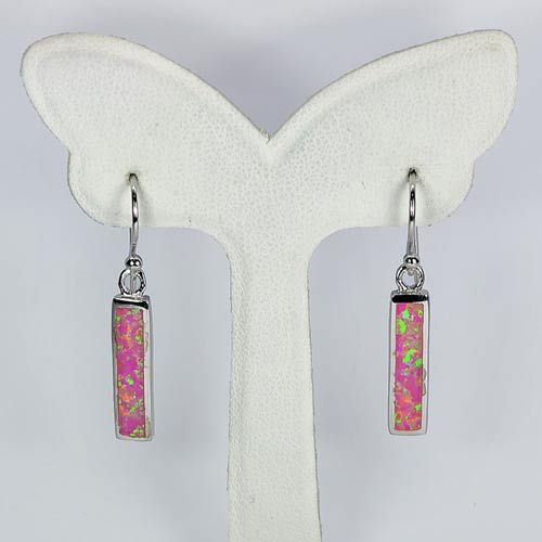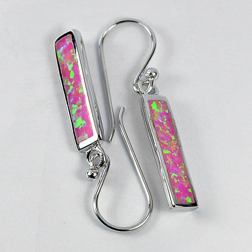 3.02 G. Multi Color Pink Created Opal Real 925 Sterling Silver Dangle Earrings