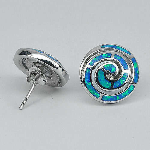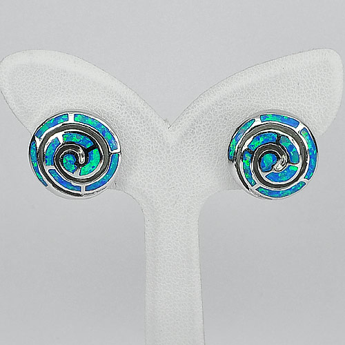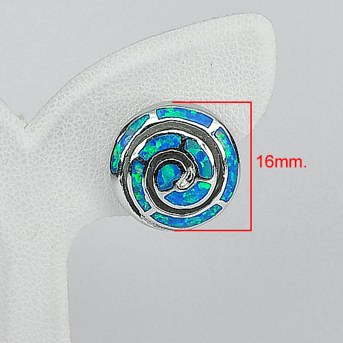 8.58 G. Real 925 Sterling Silver Spiral Stud Earrings Multi Color Created Opal