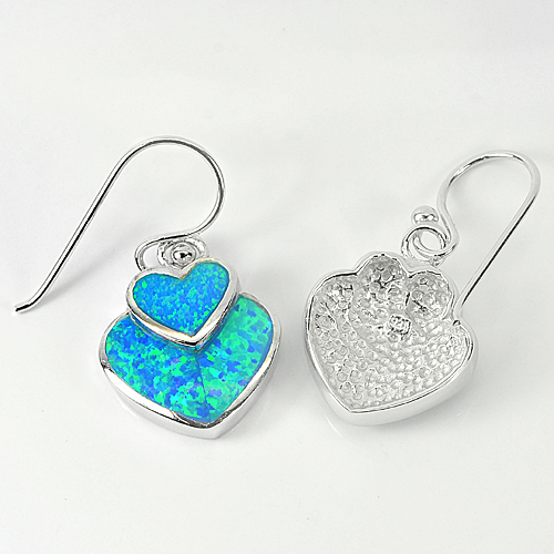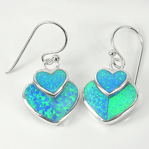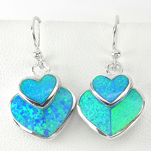 Lovely Heart Design Created Multi Color Blue Opal 925 Sterling Silver Earrings