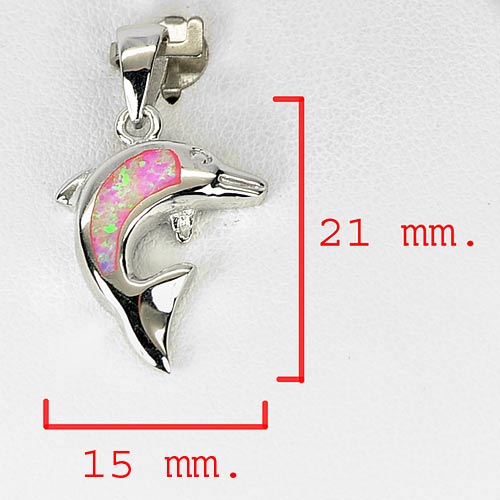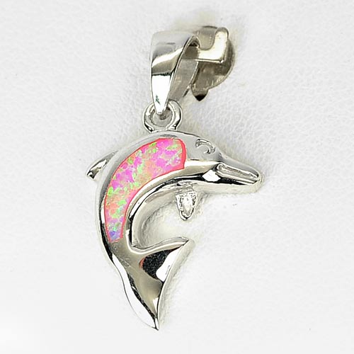 2.43 G.Multi Color Pink Created Opal Dolphin 925 Sterling Silver Jewelry Pendant