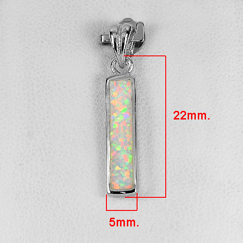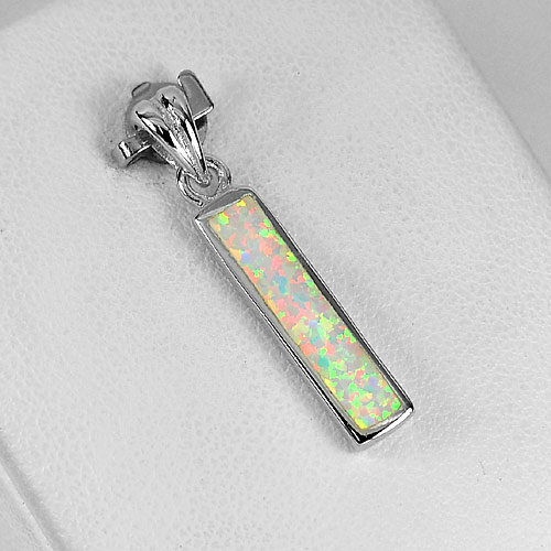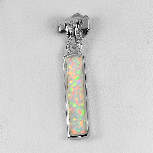 Real 925 Sterling Silver Multi Color White Created Opal Baguette Pendant Jewelry