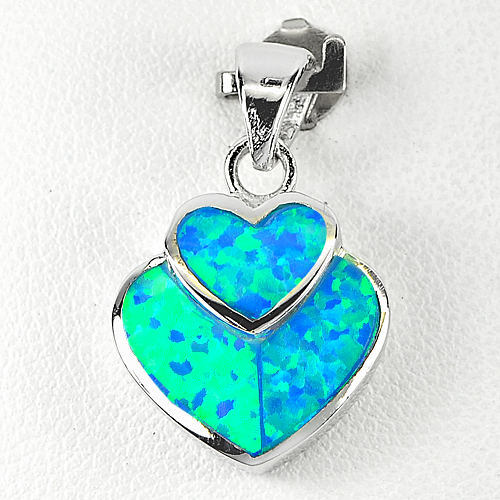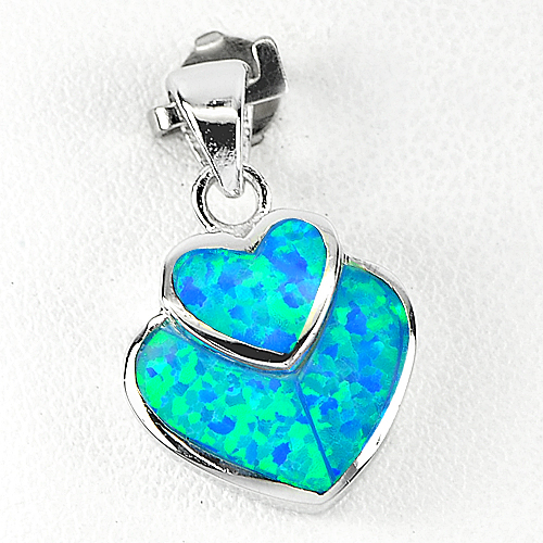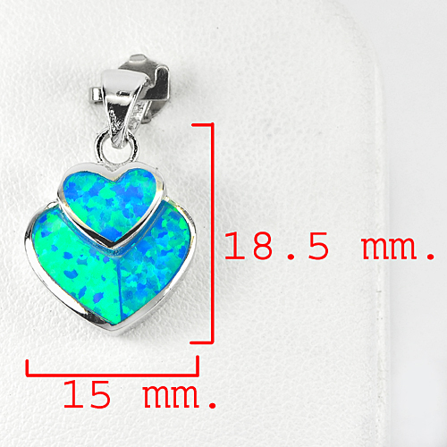Good Heart Design Created Multi Color Blue Opal Real 925 Sterling Silver Pendant