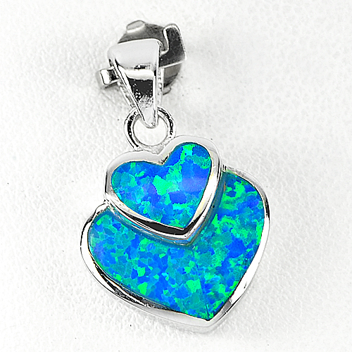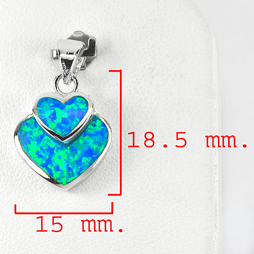 3.45 G. Heart Created Multi Color Blue Opal Real 925 Sterling Silver Pendant