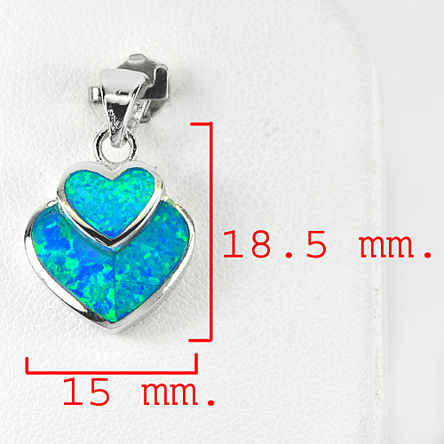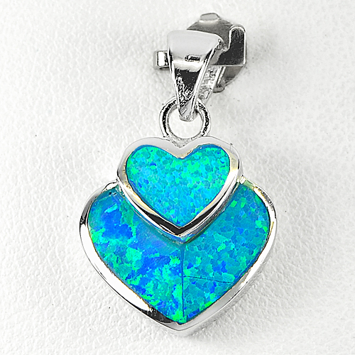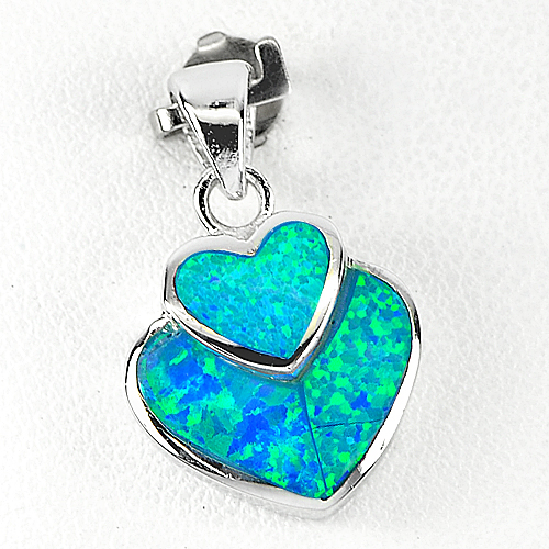 Nice Heart Design Created Multi Color Blue Opal Real 925 Sterling Silver Pendant