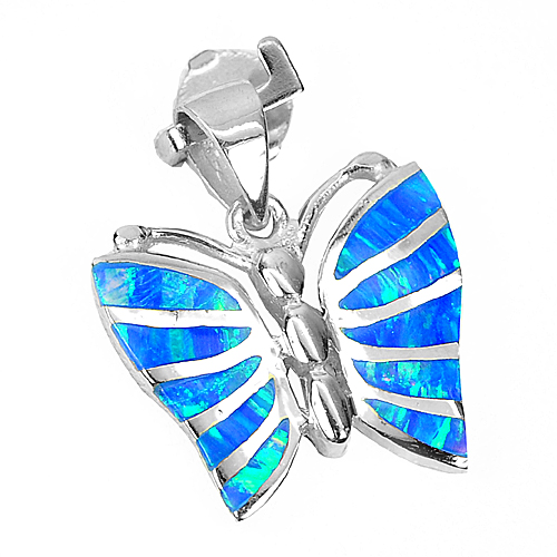 Good Butterfly Design Created Multi Color Blue Opal 925 Sterling Silver Pendant