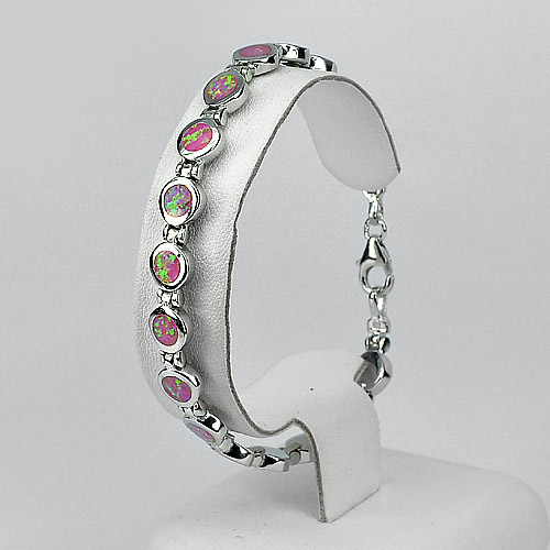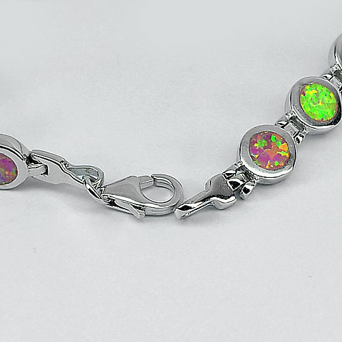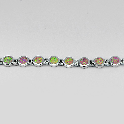 17.20 G. 925 Sterling Silver Multi Color Pink Created Opal Bracelet 7.5 Inch.