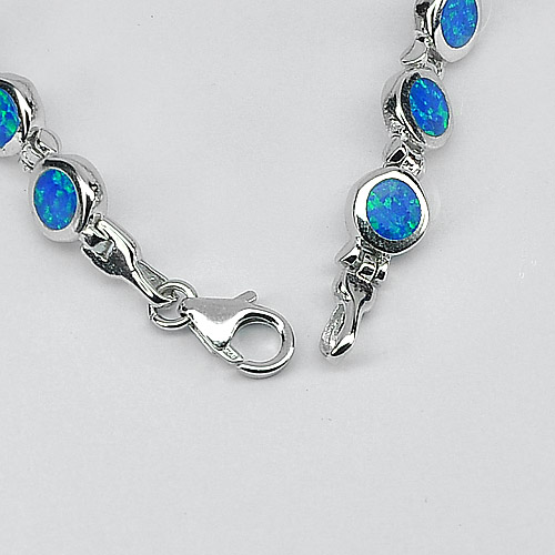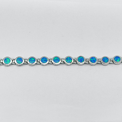 Multi Color Blue Created Opal Bracelet 925 Sterling Silver Jewelry 8 Inch.