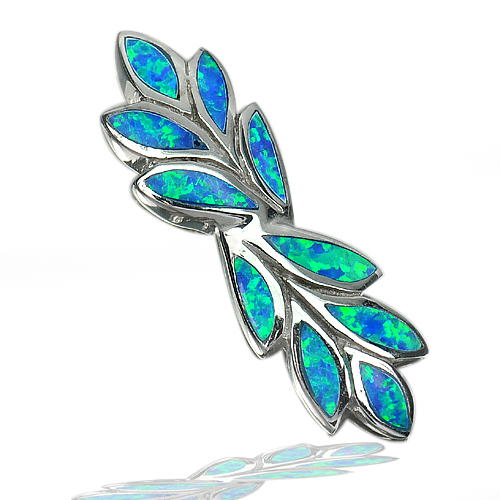 Created Multi Color Blue Opal Olive Leaf Design 925 Sterling Silver Pendant