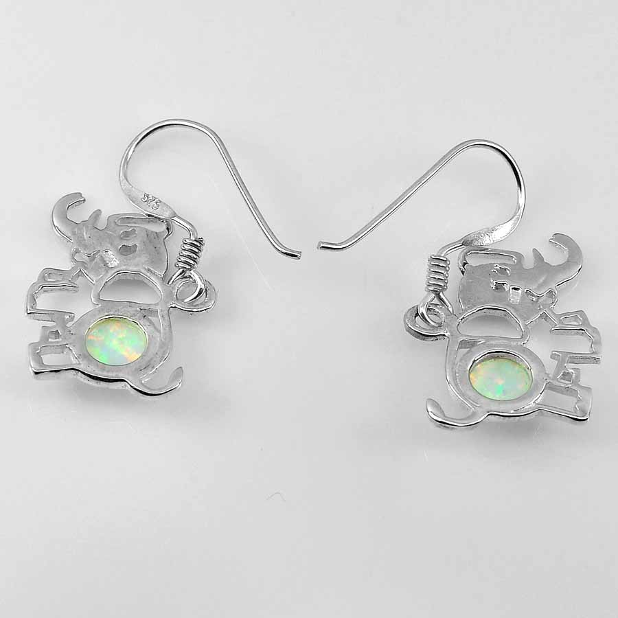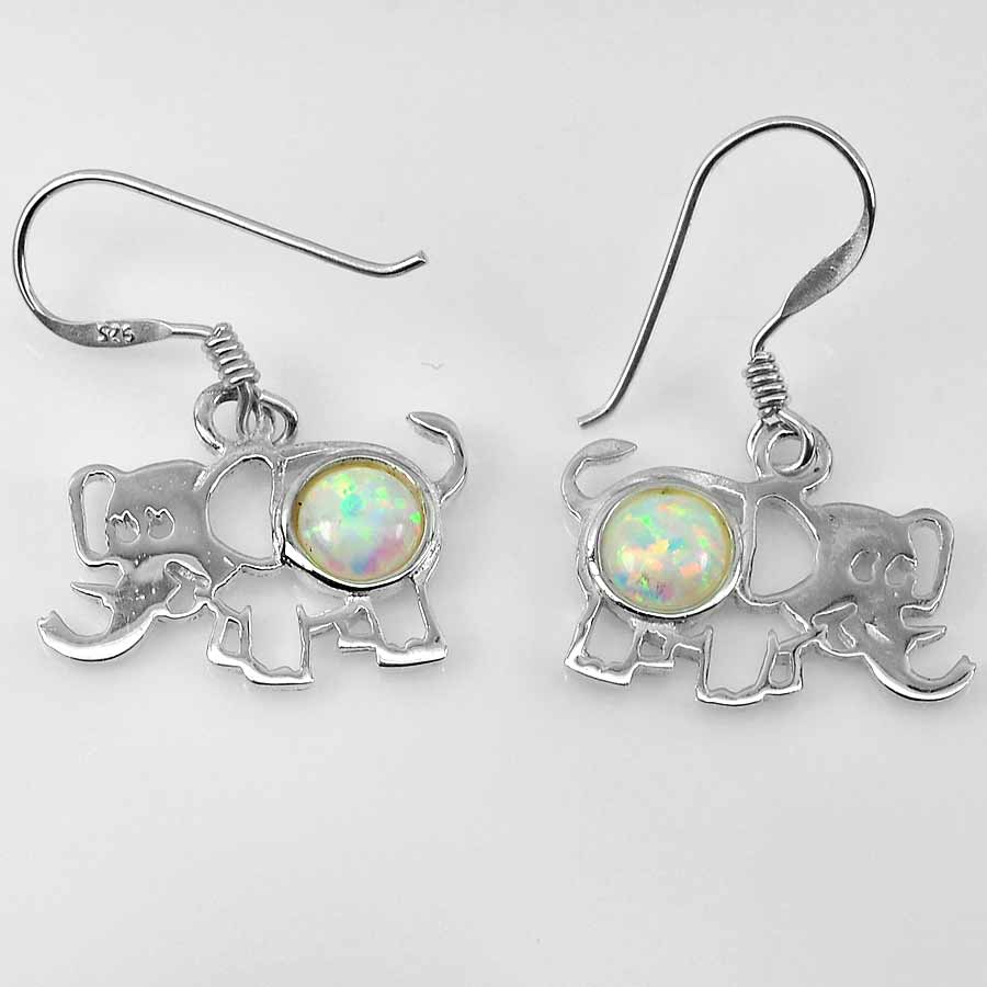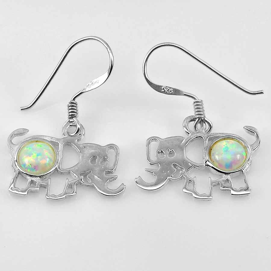 Real 925 Sterling Silver Elephant Dangle Earrings Multi Color White Created Opal