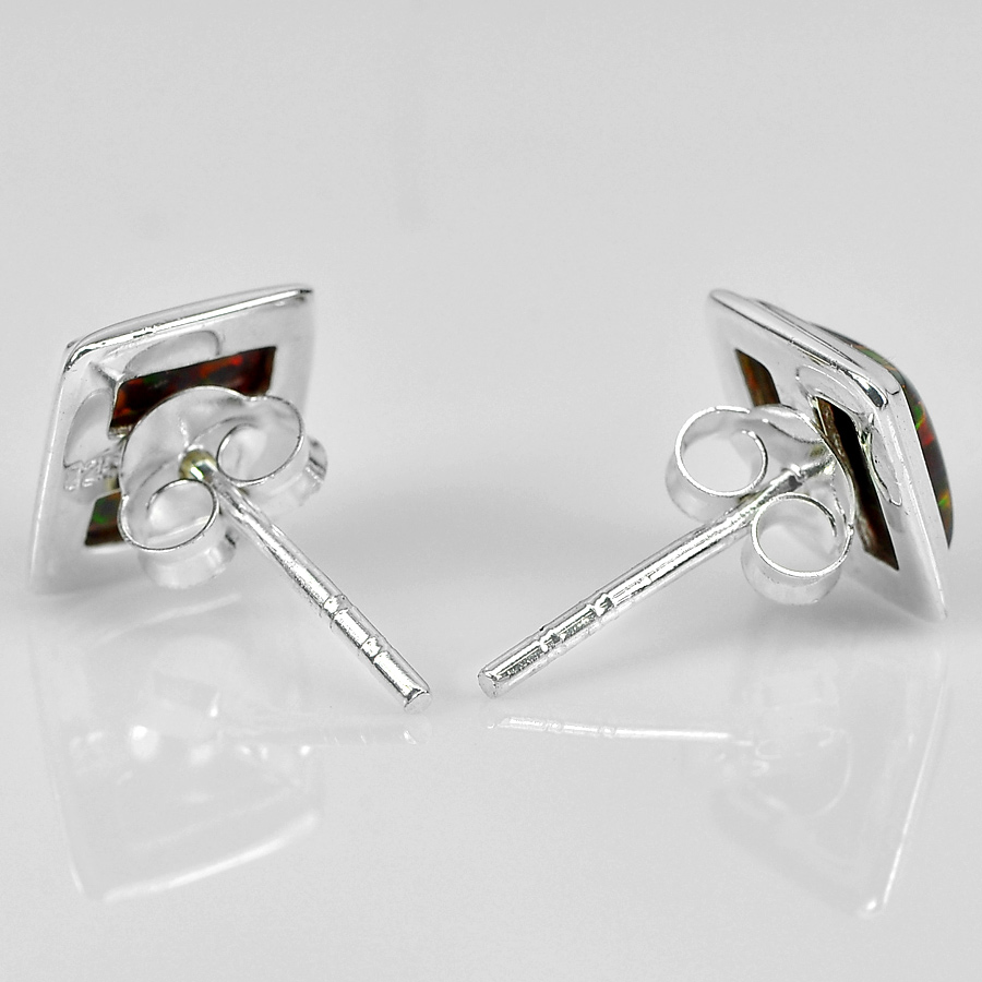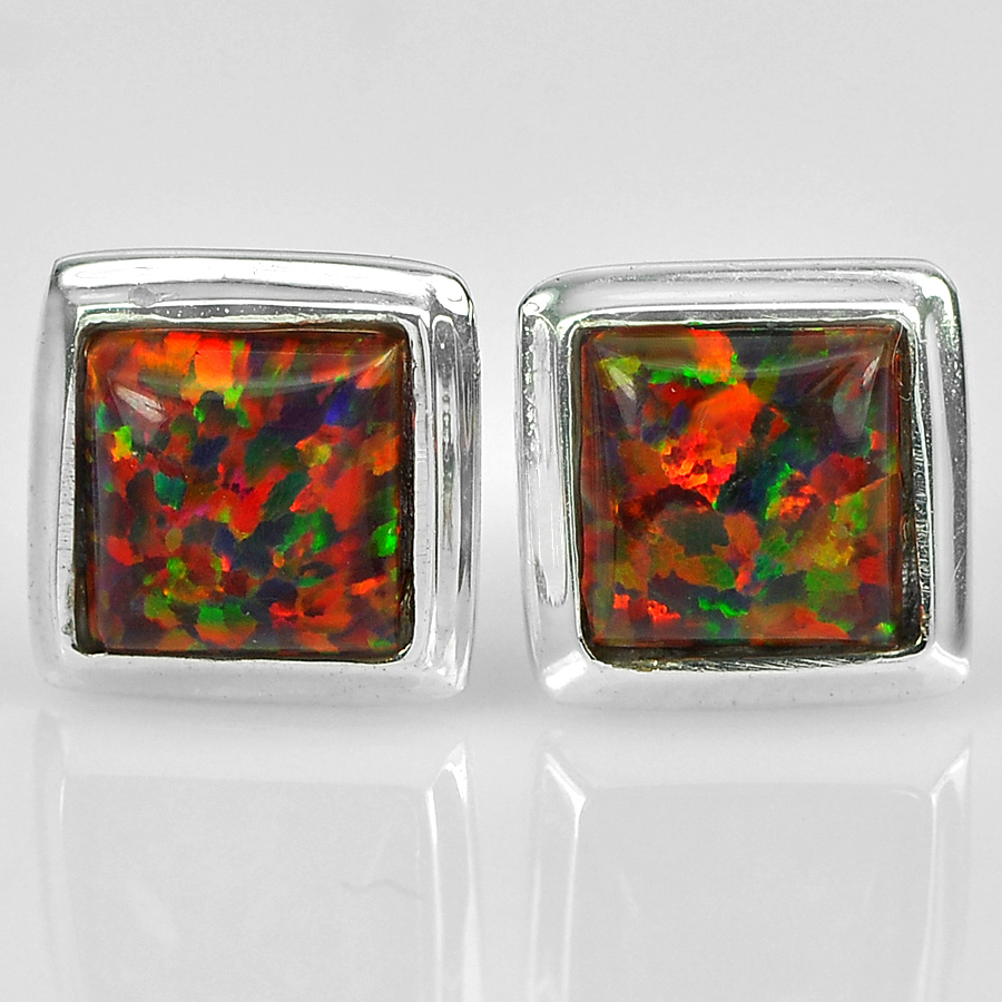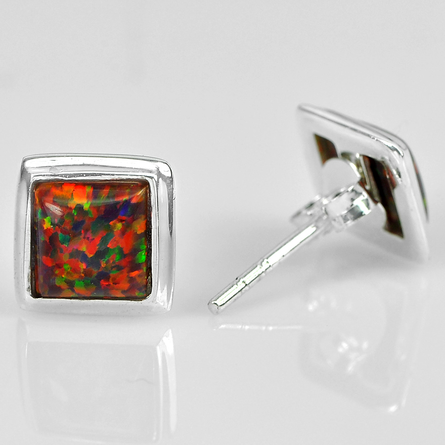 New Design 925 Sterling Silver Multi Color Orange Created Opal Stud Earrings