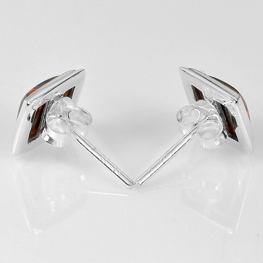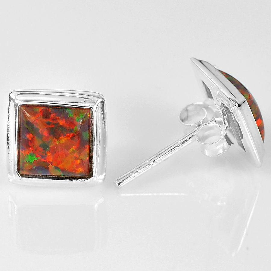 1.43 G. Real 925 Sterling Silver Stud Earrings Jewelry Multi Color Created Opal
