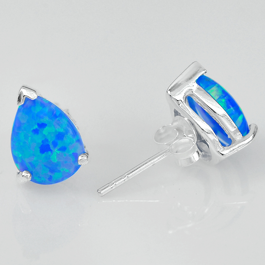 925 Sterling Silver Stud Earrings Jewelry with Multi Color Blue Created Opal