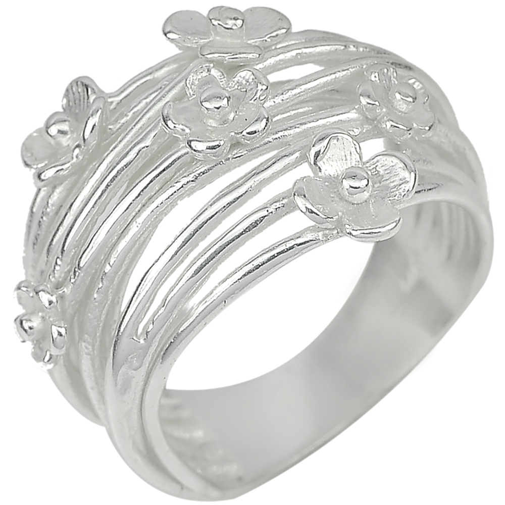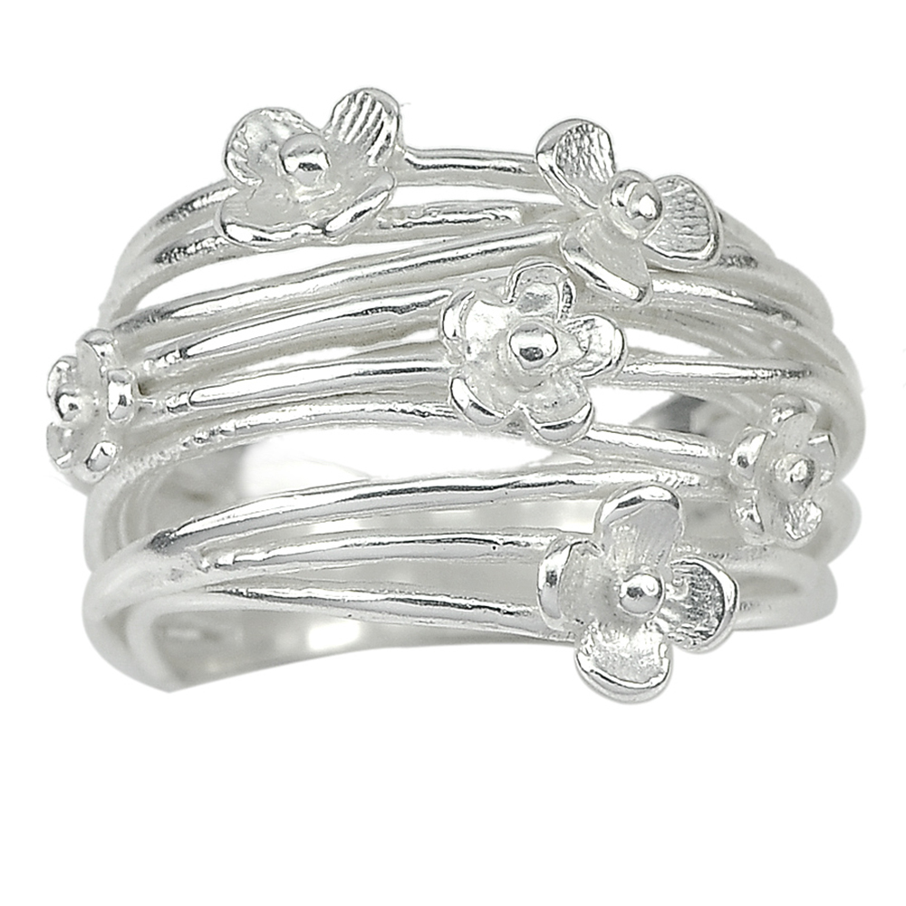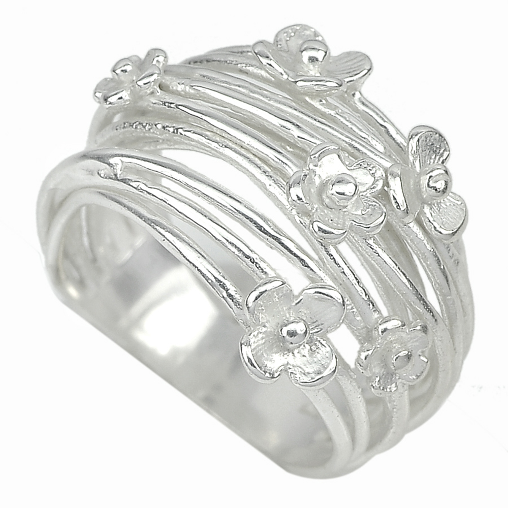 925 Sterling Silver Jewelry 5.65 G. Flowers Design Ring Size 7 Thailand