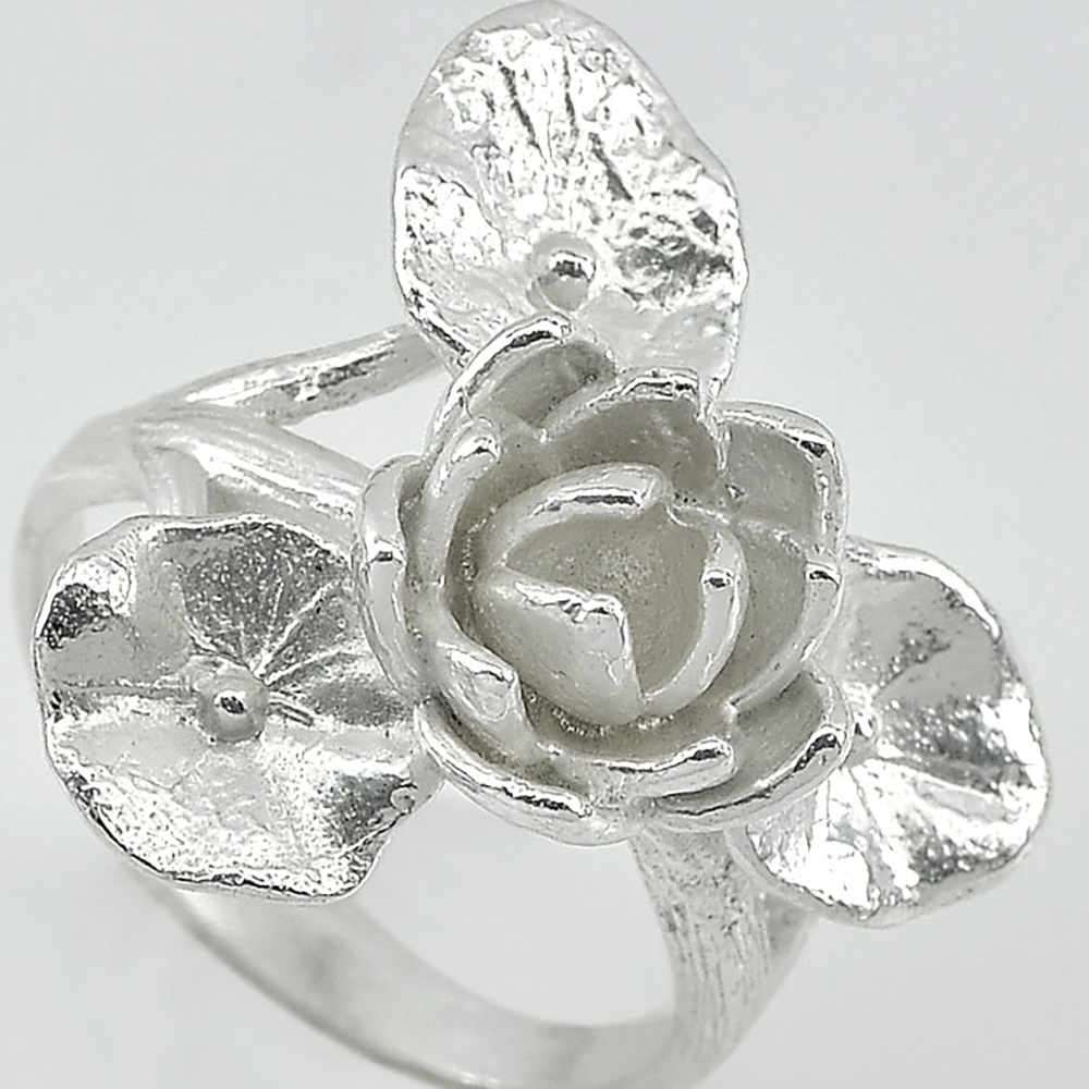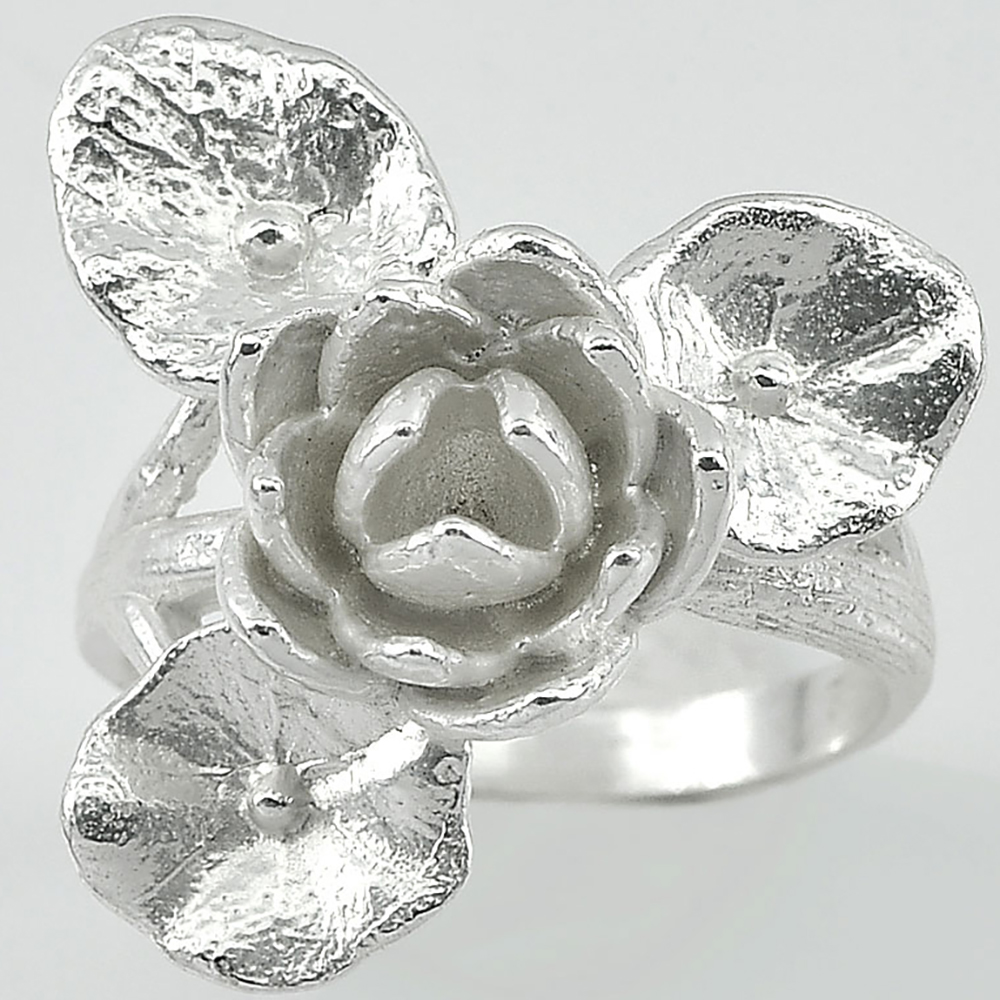 925 Sterling Silver Jewelry Ring Beautiful Flower Lotus Design 6.73 G. Size 8