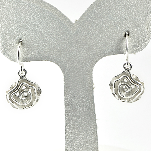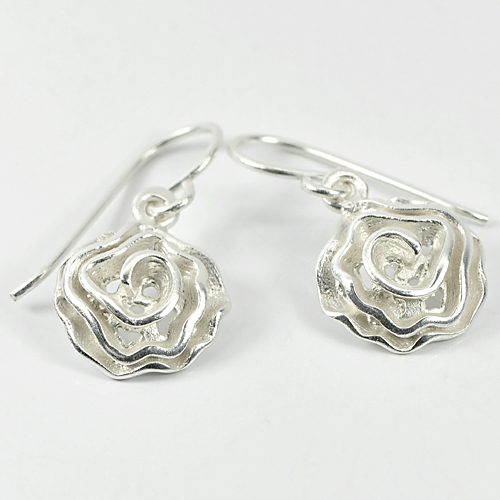 925 Sterling Silver Hoop Earrings Jewelry Beautiful Rose Design 2.73 G.