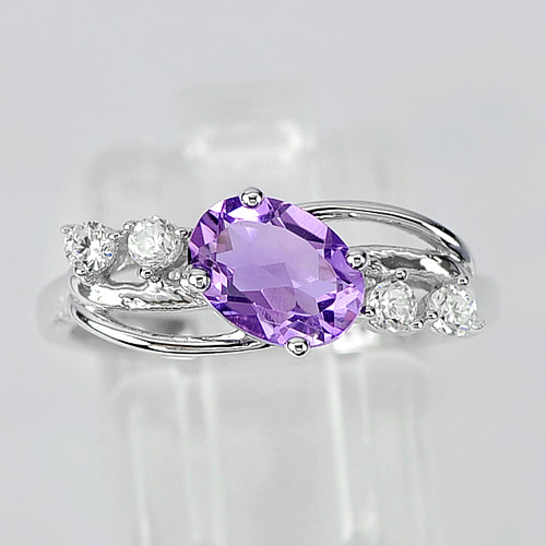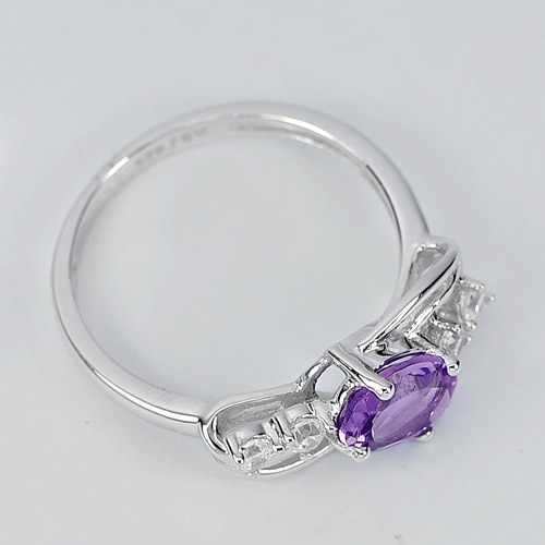 2.31 G. Real 925 Sterling Silver Ring Size 7.5 Natural Gemstone Purple Amethyst
