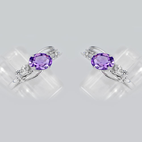 Natural Purple Amethyst Oval Shape 8 x 6 Mm. And Round White CZ Size 2 x 2 Mm. 4 Pcs.