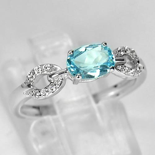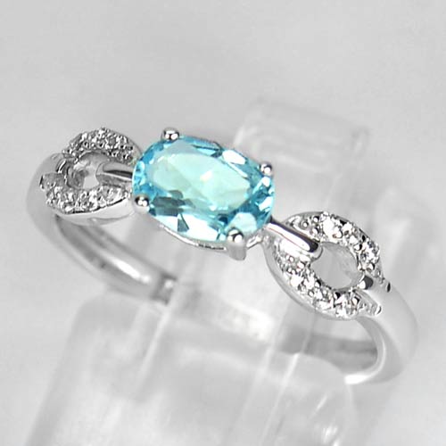 2.05 G. Oval Shape Natural Baby Blue Topaz Real 925 Sterling Silver Ring Size 7