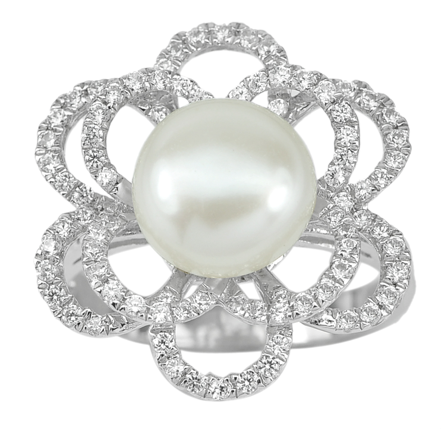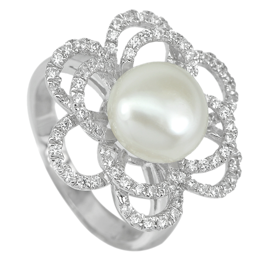 5.15 G. Natural White Pearl Gems Real 925 Sterling Silver Flower Ring Size 8