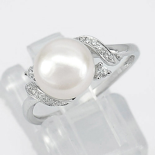Average Range 2.12 - 2.42 Gram Per 1 Pc. Natural White Pearl Round Cabochon Size 8.6 x 8.6 Mm. 1 Pcs. And Round White CZ Size 1 - 2 Mm. 16 Pcs.