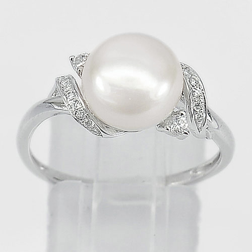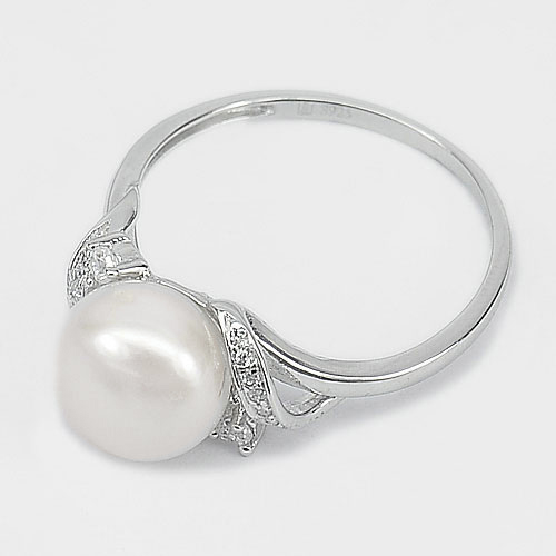 925 Sterling Silver Jewelry White Pearl 2.12 G. Ring Size 6.5 Natural Unheated