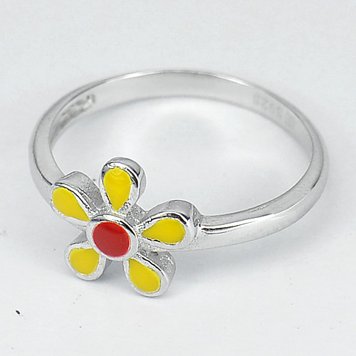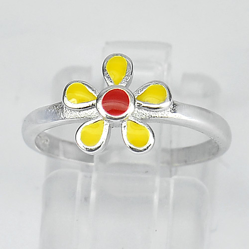 Yellow and Red Enamel 925 Sterling Silver Band Ring Flower Size 5