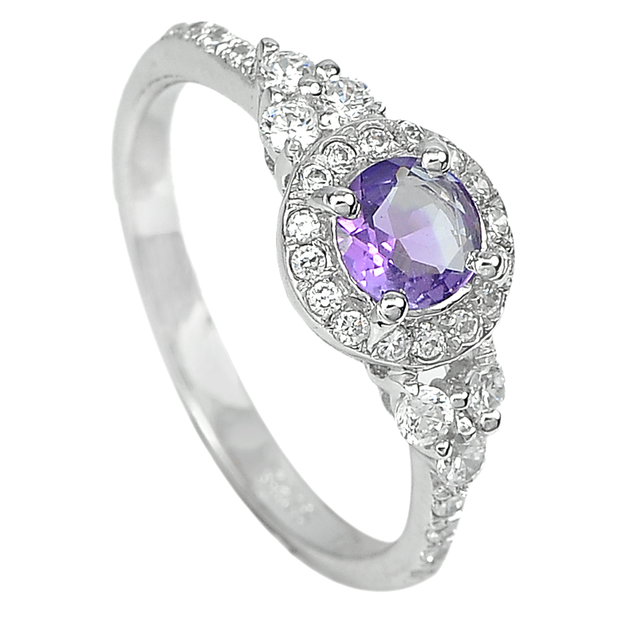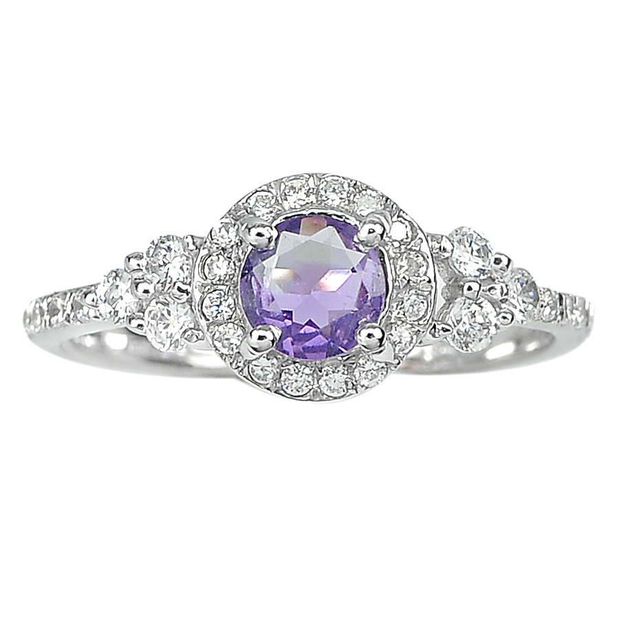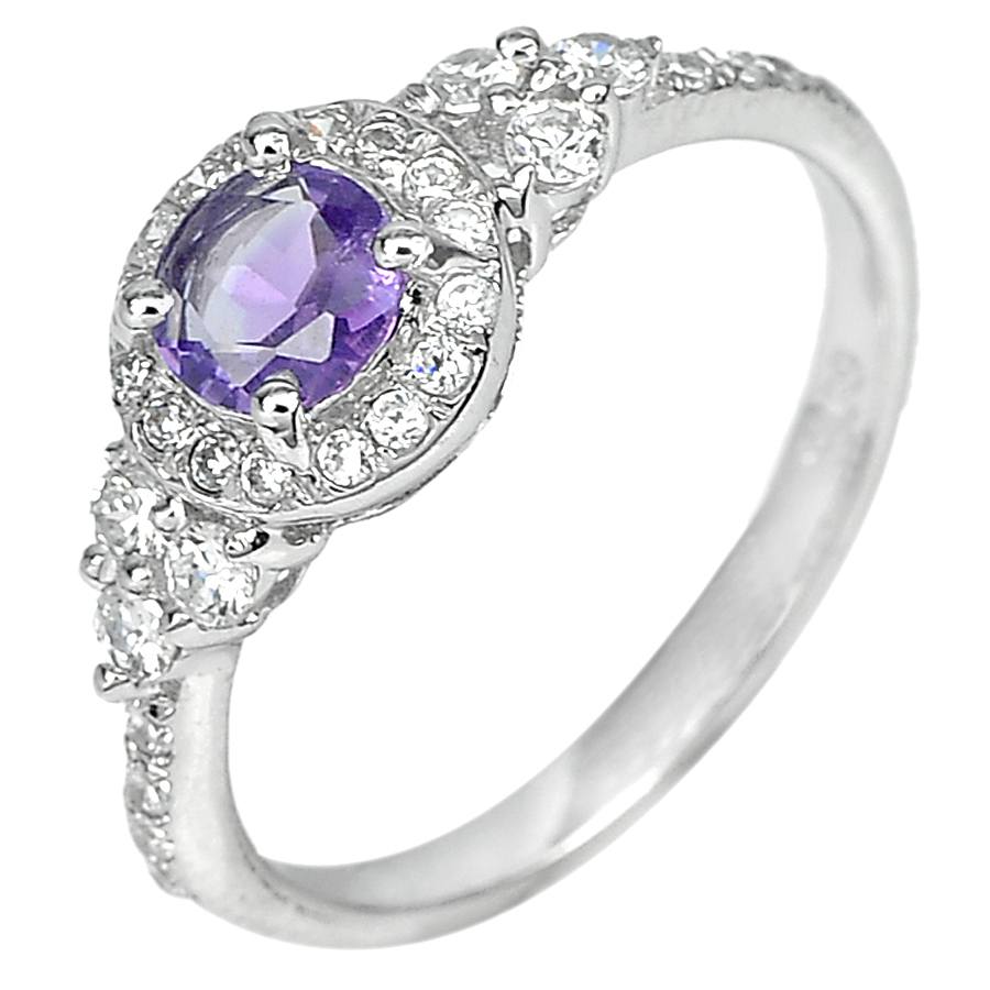 1.93 G. Real 925 Sterling Silver Ring Size 7.5 Natural Purple Amethyst with Cz
