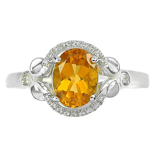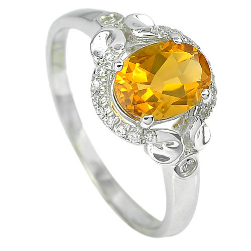 925 Sterling Silver Ring Jewelry with Natural Yellow Citrine and CZ Size 8