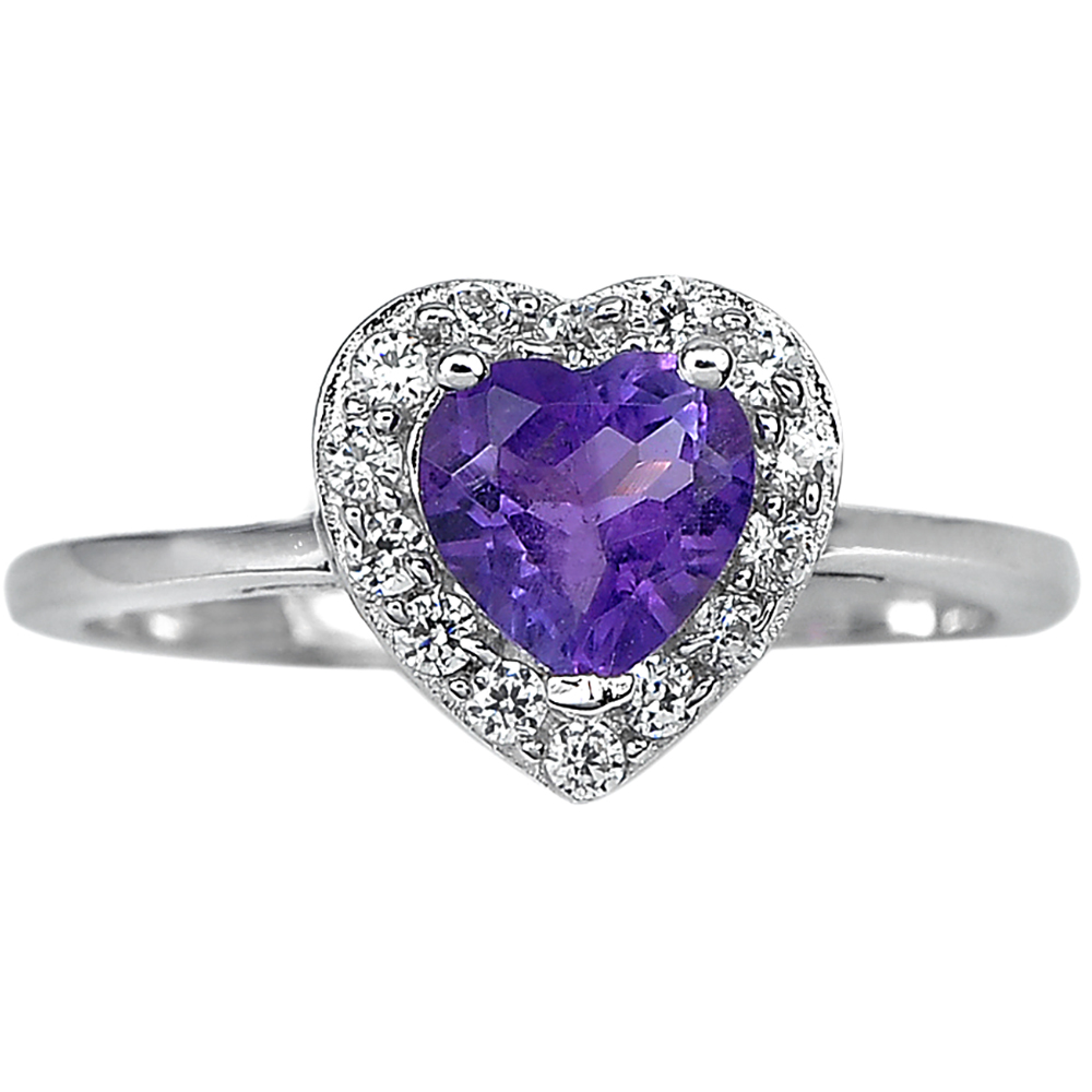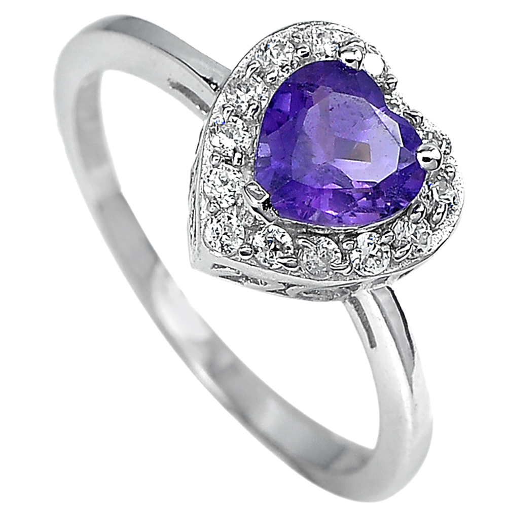 Center: Natural Purple Amethyst Heart Size 7 x 7 Mm. And White CZ Round Size 1 x 1 Mm.