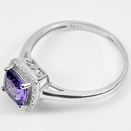 925 Sterling Silver Jewelry Ring Natural Purple Amethyst with CZ Size 7
