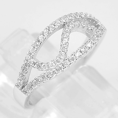 3.13 G. Real 925 Sterling Silver Wave Round White CZ Jewelry Ring Size 5.5