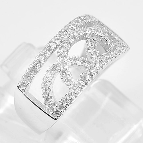 Real 925 Sterling Silver Jewelry Ring Size 7.5 White CZ Semicircle Stacked