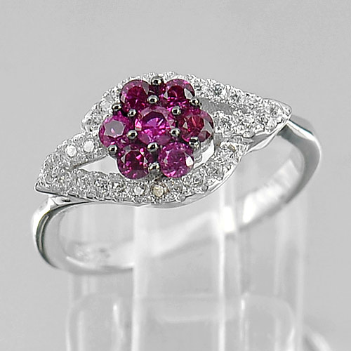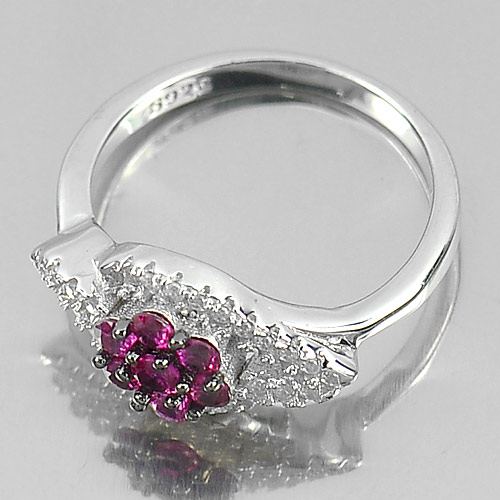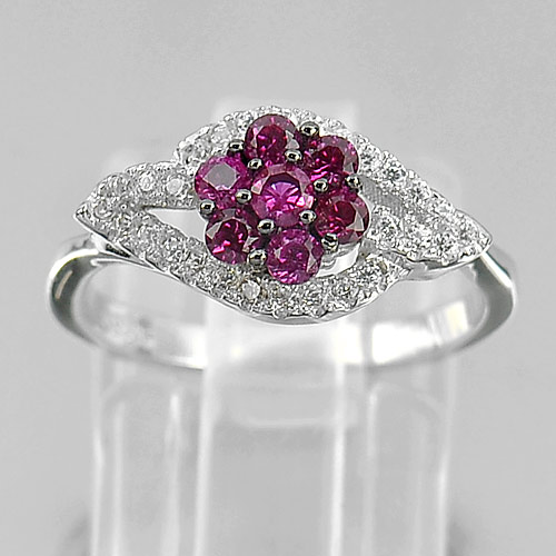 2.86 G. Real 925 Sterling Silver Pink CZ Jewelry Flower Design Ring Size 6