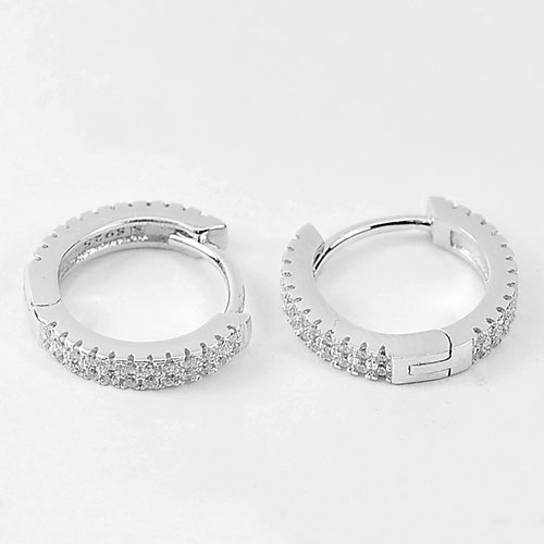 Round White CZ 925 Sterling Silver Jewelry Loop Earrings Lovely Design 5.10 G.