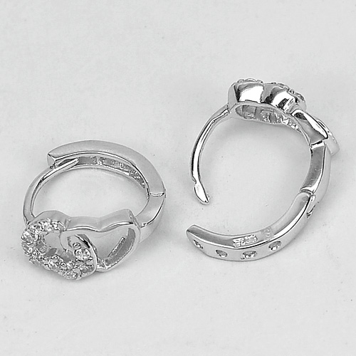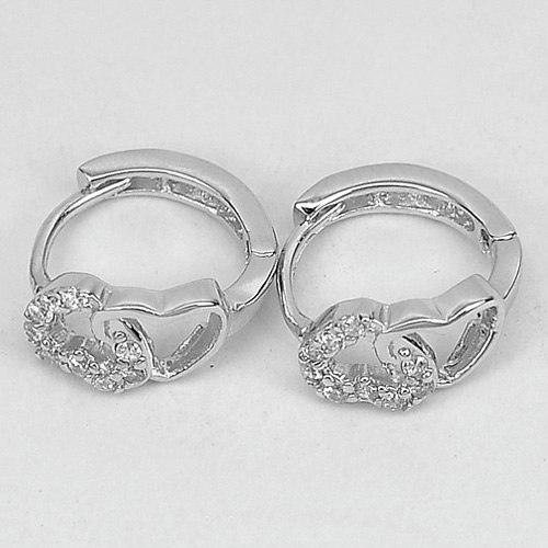 2.09 G. Real 925 Sterling Silver Jewelry Loop Earrings 1 Pair Heart Design