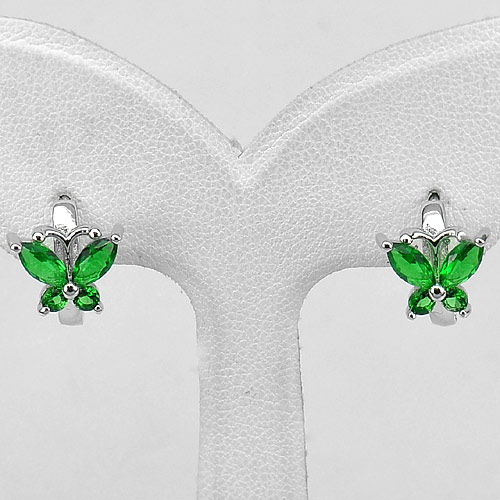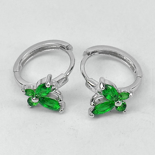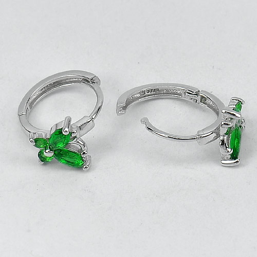 2.78 G. Real 925 Sterling Silver Jewelry Loop Earrings Green CZ
