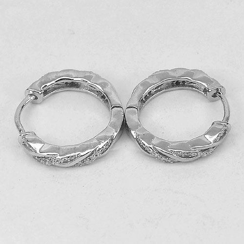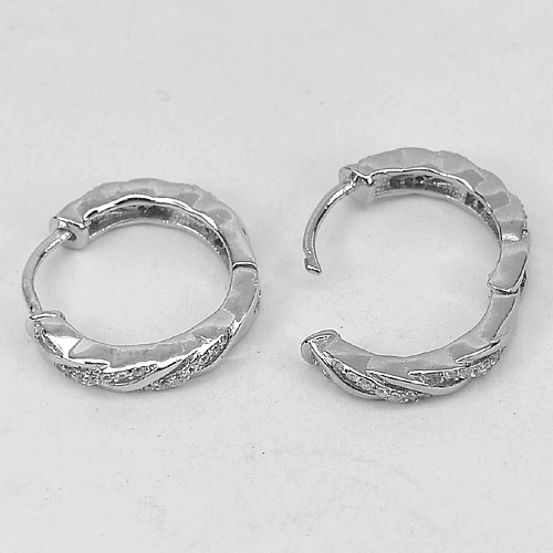 925 Sterling Silver Loop Earrings Jewelry with CZ Nice Design 4.19 G. Thailand