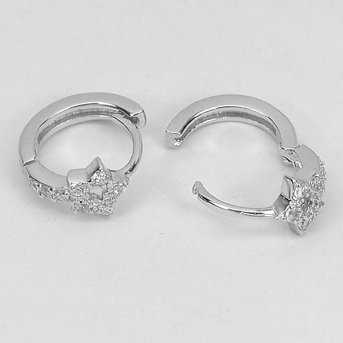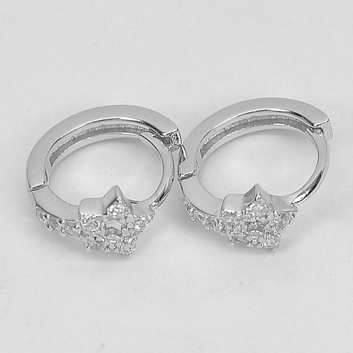 925 Sterling Silver Loop Earrings Jewelry with Round Cz Star Design 1 Pair