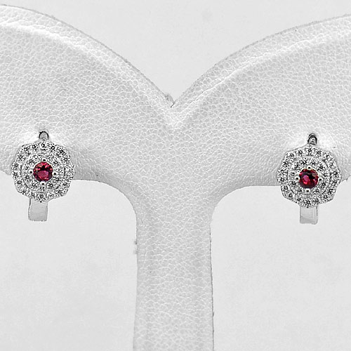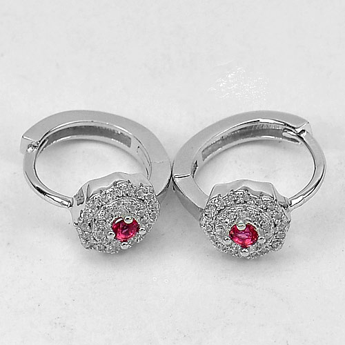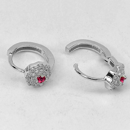 Real 925 Sterling Silver Jewelry Beautiful Loop Earrings with Round Pink CZ